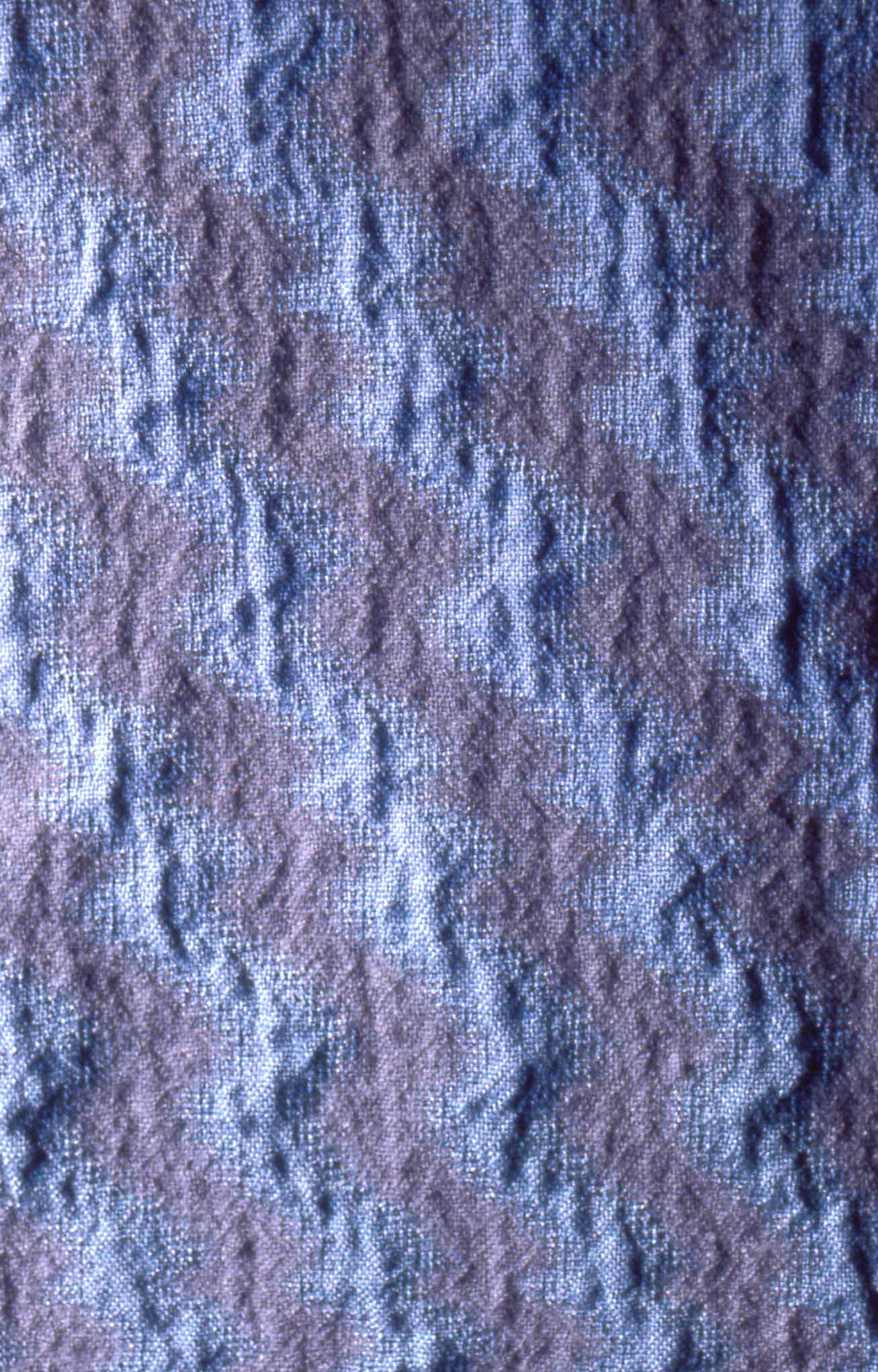 Both scarves are from the same warp; when the scarf on left failed to shrink, I switched strategies to make the scarf on the right crinkle up.